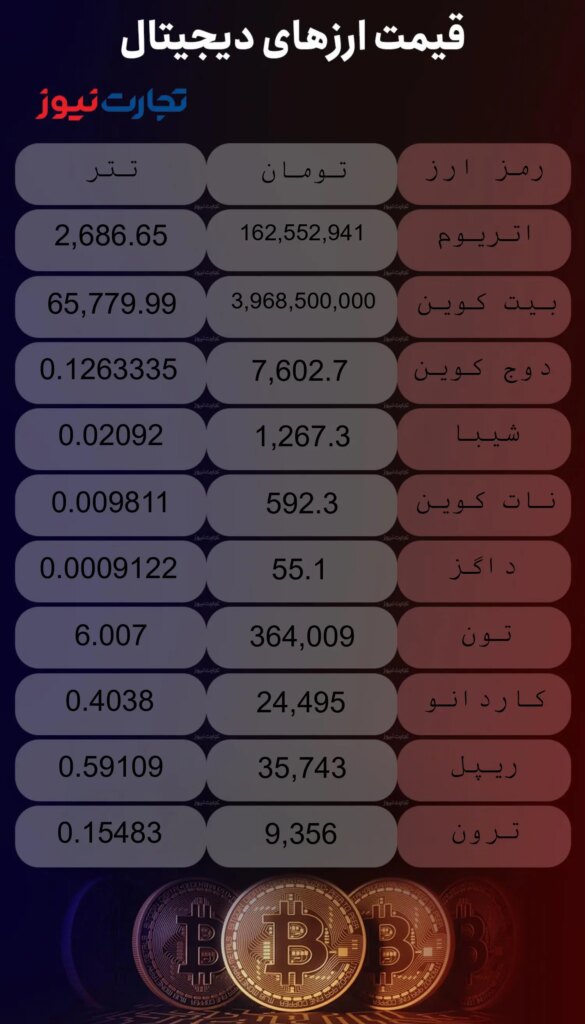 قیمت ارزهای دیجیتال امروز ۷ مهر ۱۴۰۳ + جدول