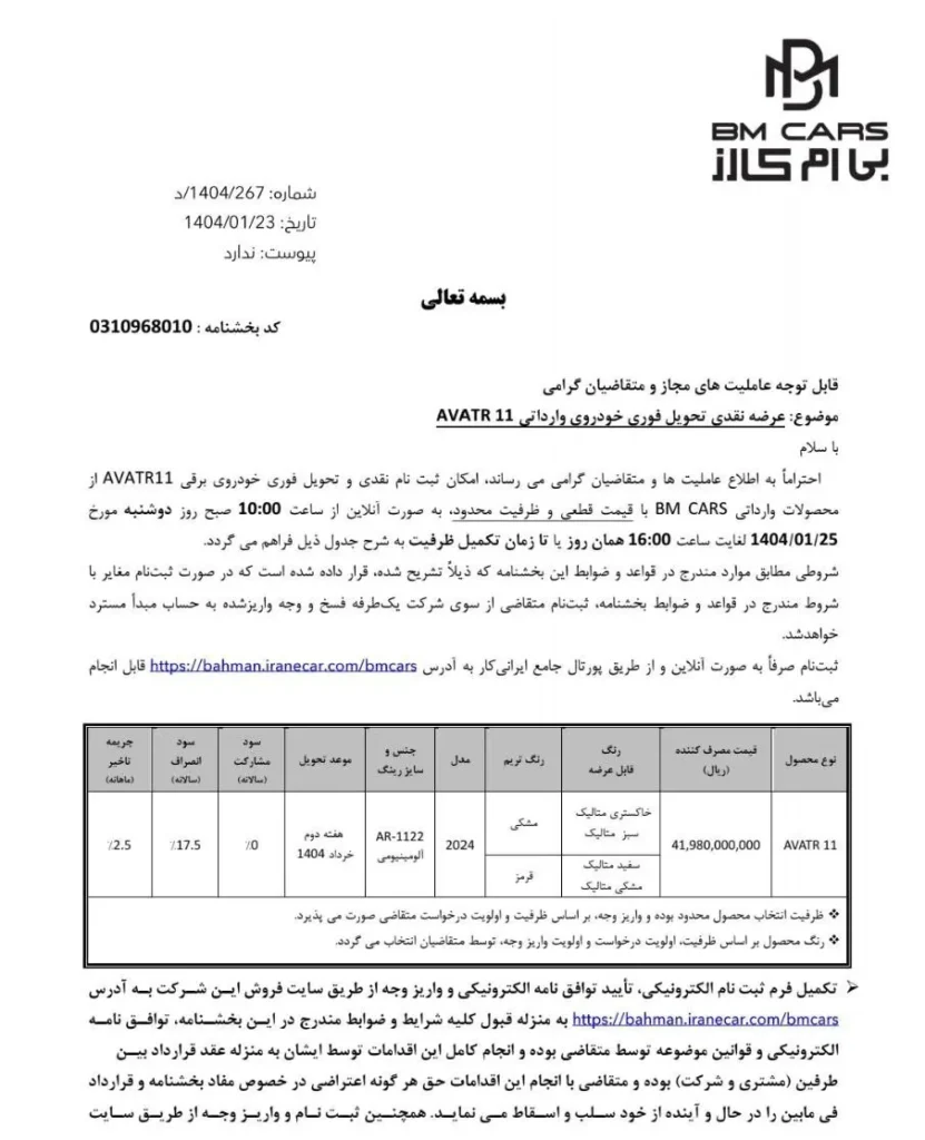 فروش فوری اتومبیل Avatr 11 توسط BMW Carz اعلام شد.