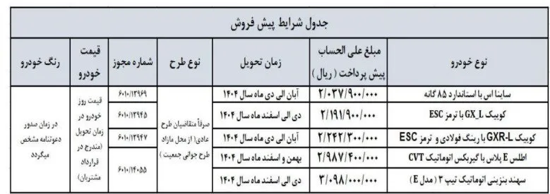 SAIPA به منظور تنظیم بازار و پاسخ به درخواست های مشتری ، فروش برخی از محصولات خود را در سال جدید از ساعت 10 صبح امروز (دوشنبه ، 25 آوریل) آغاز خواهد کرد.