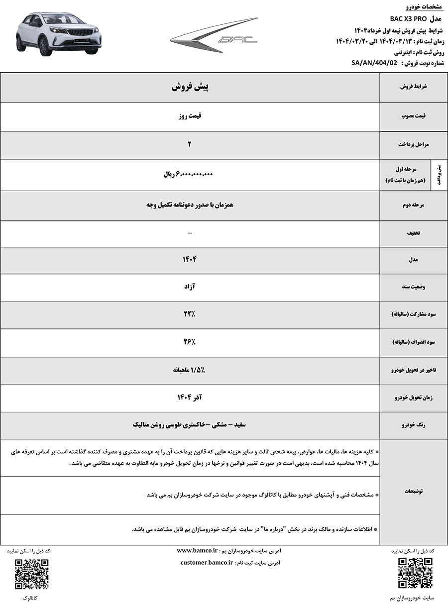 در برنامه فروش نقدی ، قیمت مصوب خودرو با یک و نیم میلیون ریال تعیین شده است. پرداخت همزمان با ثبت نام انجام می شود و مهلت تحویل در این پروژه 1 سپتامبر خواهد بود.