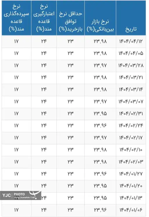 نرخ بهره بین بانکی در ارتفاع ۲۳.۹۸ درصد ماند – به گزارش میهن تجارت