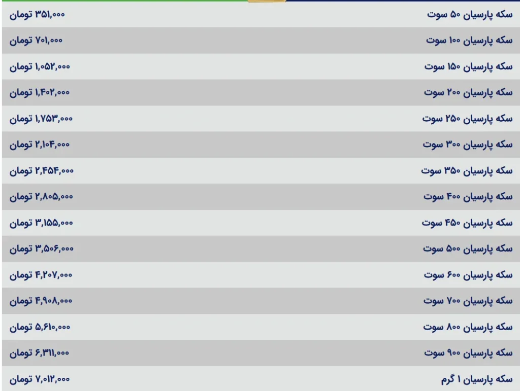 قیمت سکه پارسیان امروز دوشنبه ۶ مرداد ۱۴۰۴