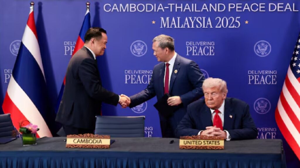 26 اکتبر: رهبران تایلند و کامبوج توافقنامه آتش بس تقویت شده ای را با حضور ترامپ امضا کردند که مداخله وی در درگیری مرزی تلخ دو کشور باعث شد تا کامبوج نامزد جایزه صلح نوبل شود. این توافق بر اساس آتش بسی است که سه ماه پیش امضا شد.